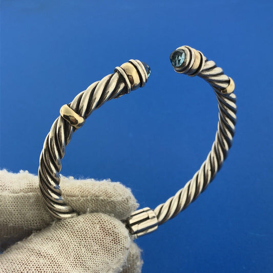 Kim International KI Sterling Silver 14K Gold Blue Topaz Eleganza Cuff Bracelet
