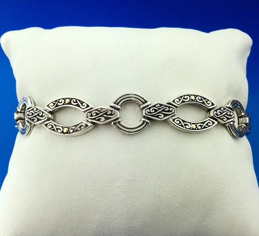 Designer 18K White Gold Sterling Silver Scroll Oval Circle Link Toggle Bracelet