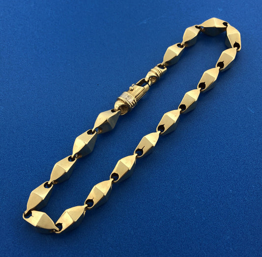 Designer Cal 10k Yellow Gold Three-Dimensional Diamond Shaped Bead 8" Bracelet