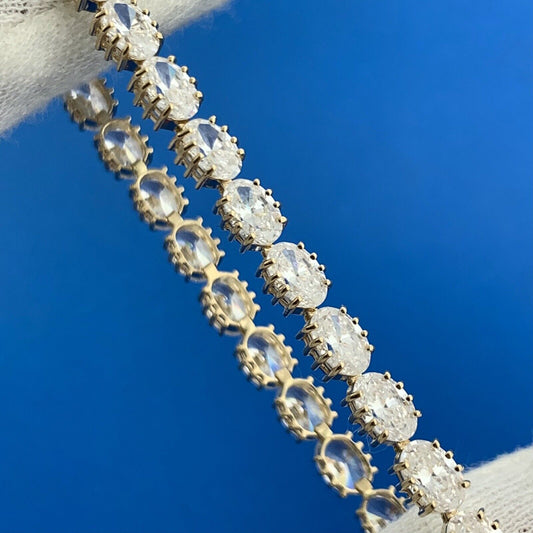 Designer 14K Yellow Gold Oval Cubic Zirconia CZ Statement Tennis Bracelet 10tcw