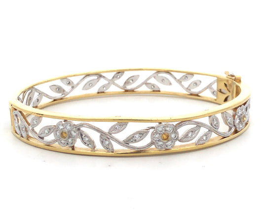 Gorgeous 18k Yellow White Gold Champagne White Diamond Hinged Cuff Bracelet