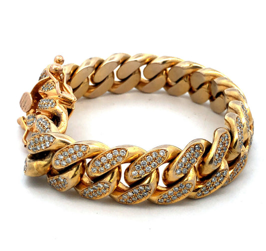 Solid 10K Yellow Gold Pave Diamond Encrusted Miami Cuban Link Statement Bracelet