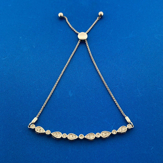 Designer KA1772 10K White Gold Diamond Floral Cluster Adjustable Lariat Bracelet