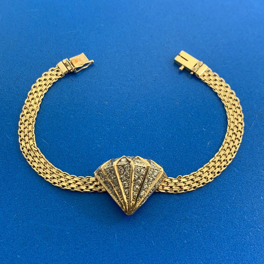 Estate 14K Yellow Gold Custom Round Diamond Statement Mesh Link Bracelet