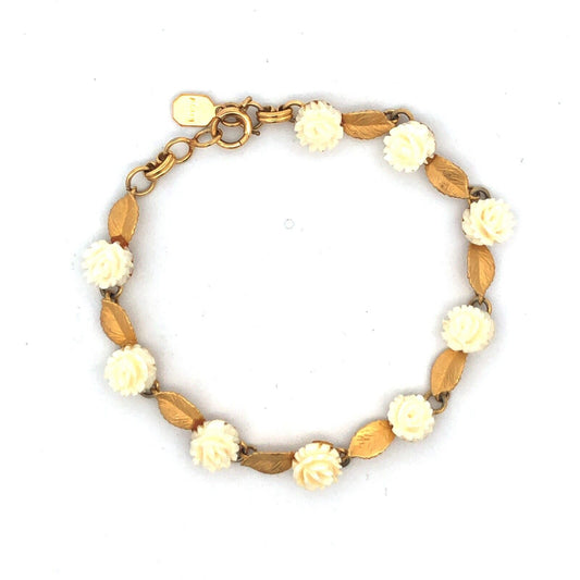 Exquisite Designer Vintage 14K Burnished Gold Floral Leaf Panel Tennis Bracelet