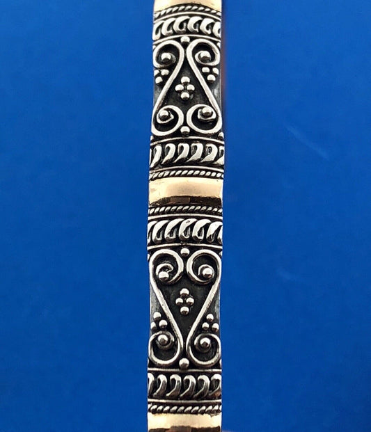 Designer Sterling Silver 18K Yellow Gold Dot Bead Scroll Work Bangle Bracelet