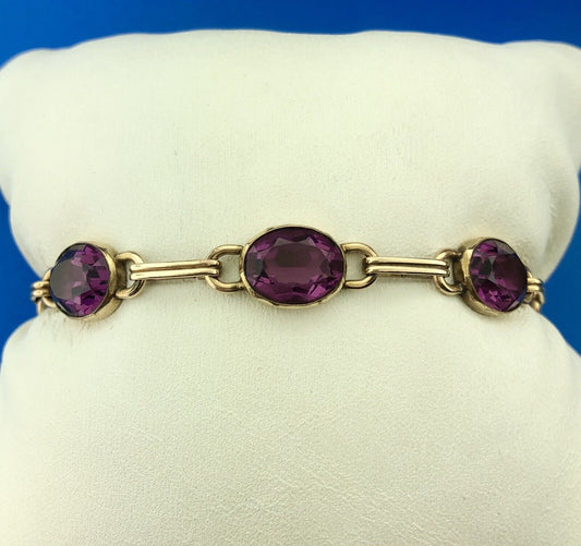 Vintage 12KT Gold Filled Oval Purple Amethyst Station Panel Link Bracelet