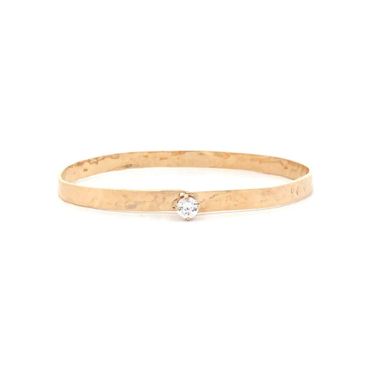 Modernist 14K Yellow Gold Hammered Textured Cubic Zirconia Oval Bangle Bracelet