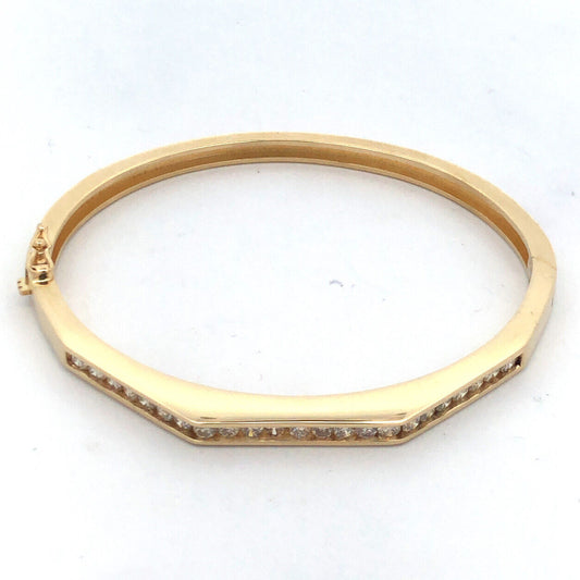 14K Yellow Gold Round Channel Diamond Geometrical Hinged Bangle Bracelet