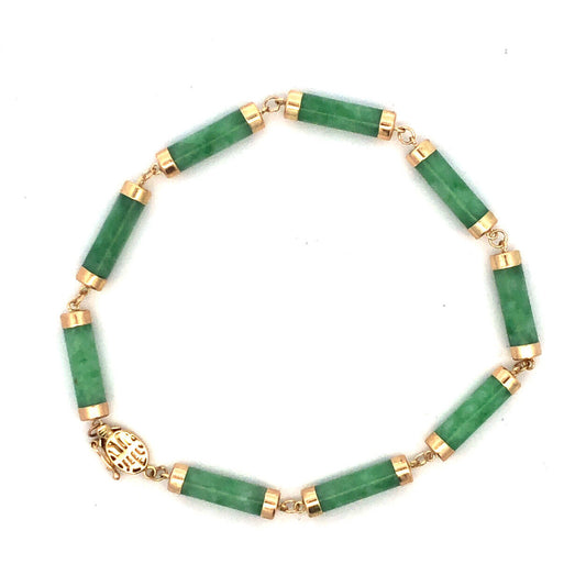 Estate 14K Yellow Gold Green Jade Bar Link Station Bracelet