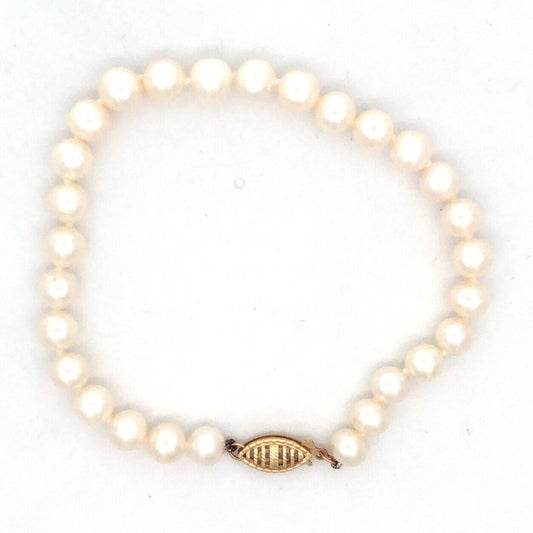 Designer RTI 10K Yellow Gold White Pearl Beaded Tennis Bracelet