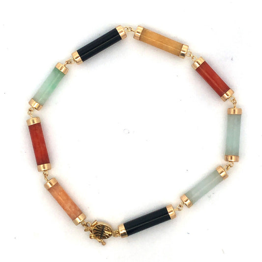 Estate 14K Yellow Gold Green White Yellow Red Jade Black Onyx Bar Link Bracelet