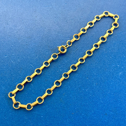 Designer 14K Yellow Gold Bar And Circle Link Chain Bracelet