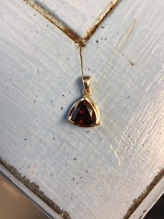 10K Yellow Gold Trillion Cut Garnet January Birthday Anniversary Pendant