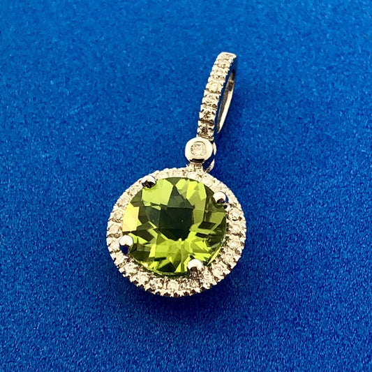 14k White Gold Peridot Pendant Diamond Halo Accents August Anniversary Pendant