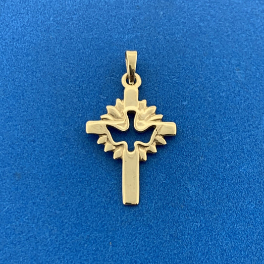 Designer 10K Yellow Gold Modernist Peace Dove Religious Communion Cross Pendant