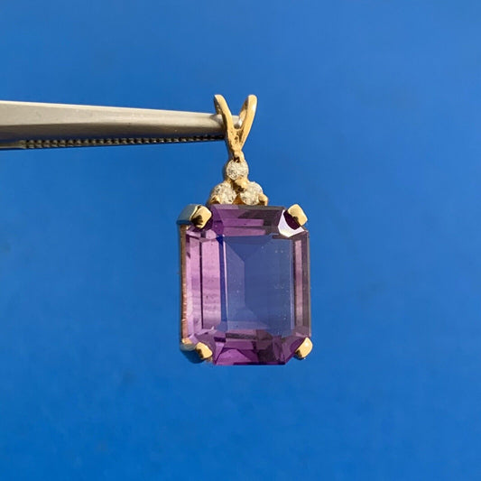 Vintage Designer 14K Yellow Gold Emerald Cut Amethyst Diamond Accent Pendant