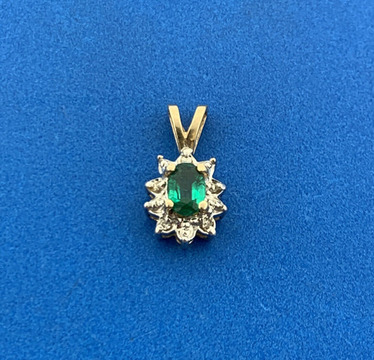 Designer 10k Yellow White Gold Oval Emerald Diamond Accented Charm Pendant