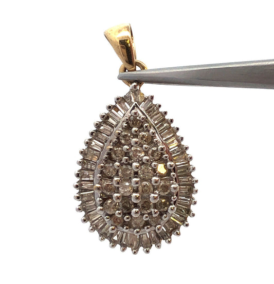 10K Yellow White Gold Diamond Cluster Pear Shaped Statement Pendant