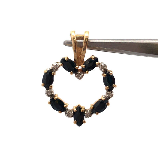 Designer 14K Yellow Gold Marquise Sapphire Diamond Accented Heart Pendant