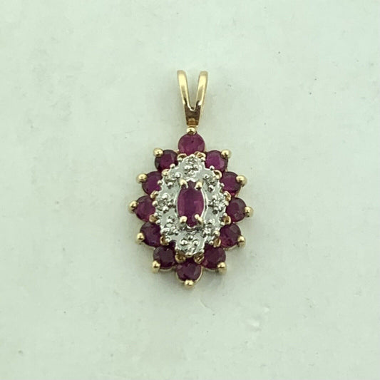 Vintage 10K Yellow Gold Ruby Diamond Drop Pendant