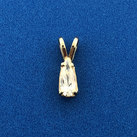 Gorgeous 14k Yellow Gold Long Pear Cut Diamond Precious Pendant 1/4ctw .25
