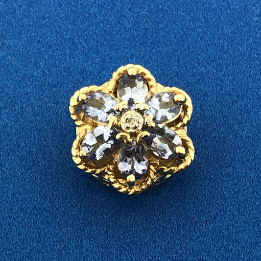 Designer KLJCI 14k Yellow Gold Oval Cut Tanzanite Round Diamond Floral Pendant