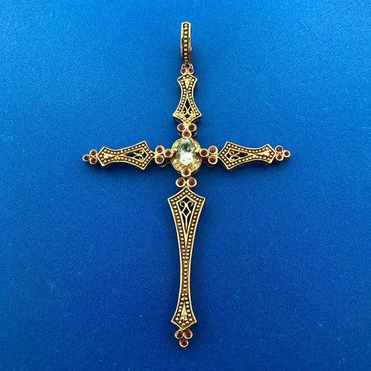 SR 14k Rose Gold Blue Tourmaline Ruby Diamond Faith Cross Pendant Enhancer