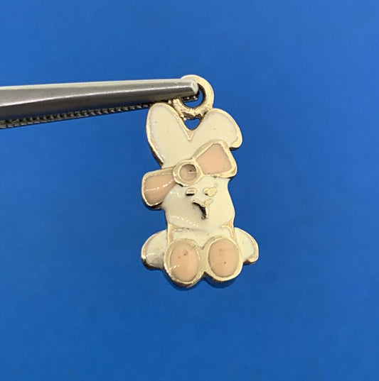 Vintage 10K Yellow Gold White and Pink Enamel Baby Girl Bunny Charm Pendant