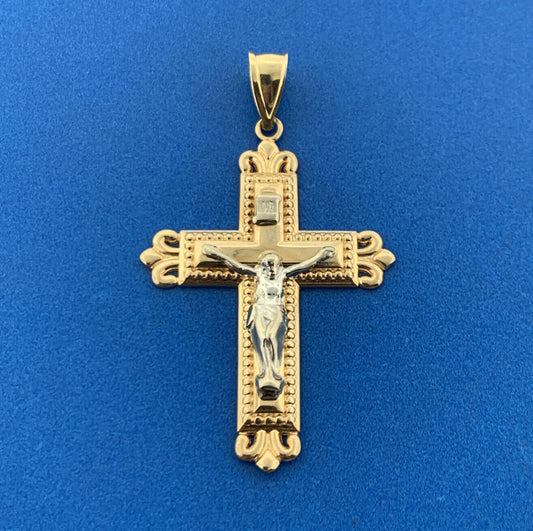 Michael Anthony MA 14K Yellow White Gold 3D Crucifix Cross Religious Pendant