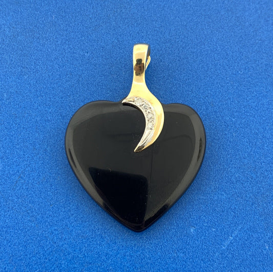 Gorgeous Designer 14k Yellow Gold Black Heart Onyx Round Diamond Accent Pendant