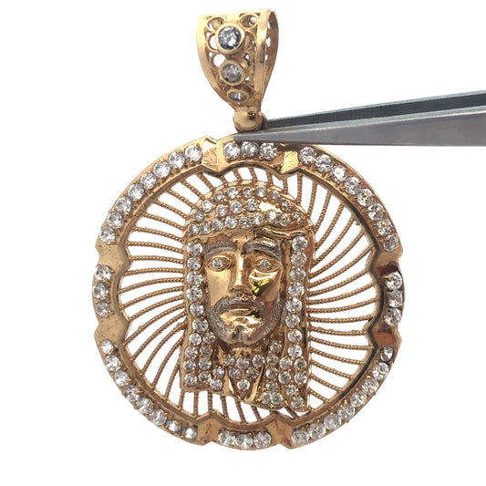 10K Yellow Gold Cubic Zirconia Christ Head Jesus Religious Statement Pendant