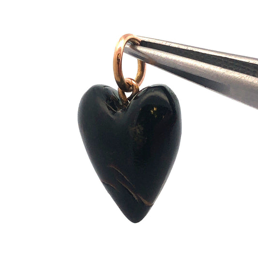 Vintage 10K Yellow Gold Carved Ebony Heart Charm Pendant