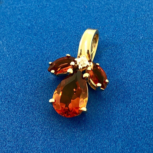 Estate 10K Yellow Gold Citrine Diamond Floral Cluster November Occasion Pendant