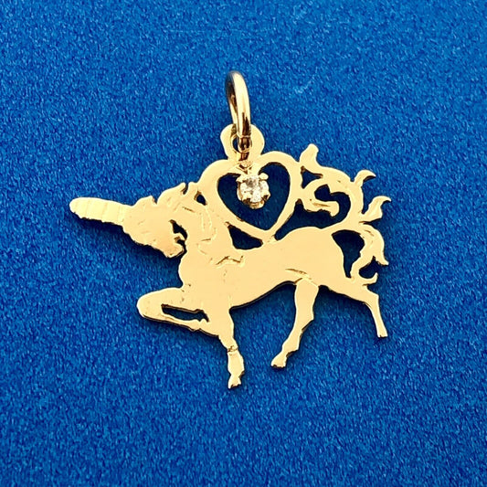 Whimisical 14K Yellow Gold Diamond Dancing Prancing Unicorn Charm Pendant