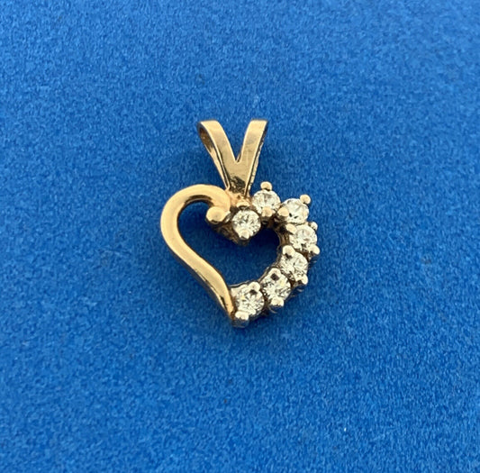 Designer 10K Yellow Gold Round Cubic Zirconia CZ Heart Petite Charm Pendant