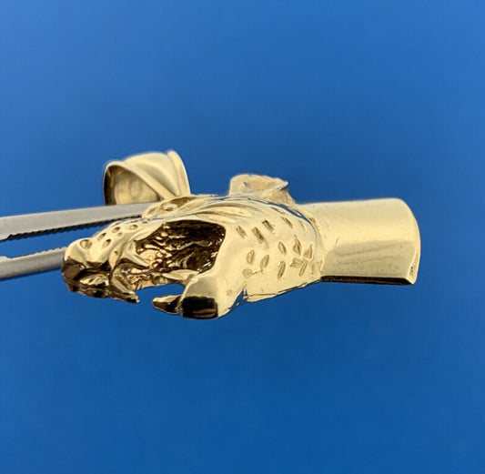 Custom Artisan 10K Yellow Gold Detailed Snarling Tiger Big Cat Statement Pendant
