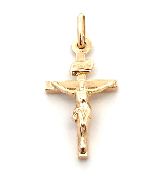 Designer Italy 14K Yellow Gold Polished Jesus Crucifix Cross Charm Pendant