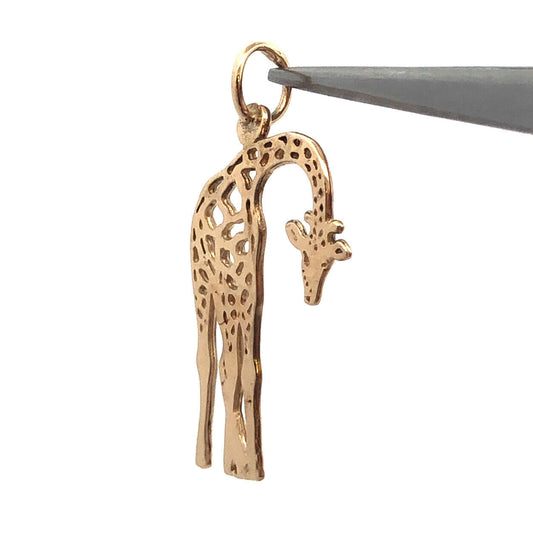 Designer JA 14K Yellow Gold Open Work Giraffe Wild Zoo Animal Charm Pendant