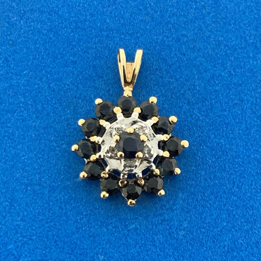 Vintage 14K Yellow White Gold Blue Sapphire Diamond Accent Anniversary Pendant