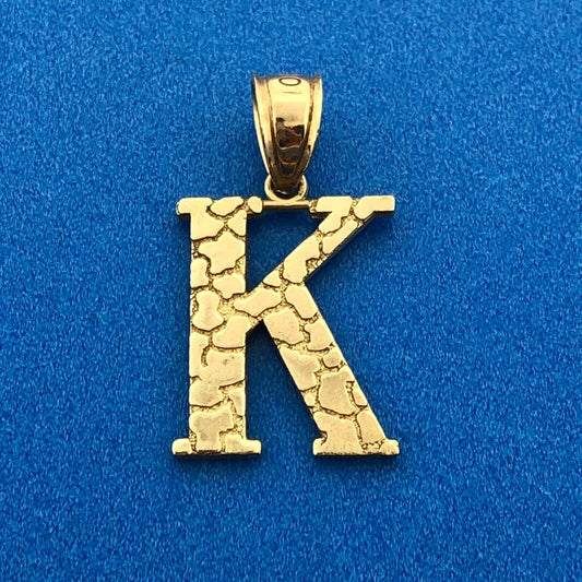 Gorgeous 10k Yellow Gold Textured Alphabet Initial Letter K Dangle Pendant