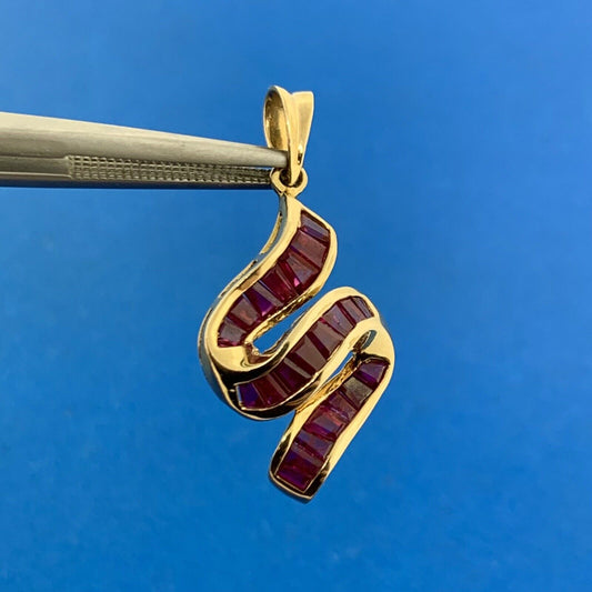 Designer 14K Yellow Gold Ruby Tapered Baguette S Ribbon Statement Pendant