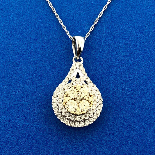 Royal 14K White Yellow Gold Canary White Diamond Double Halo Pear Pendant
