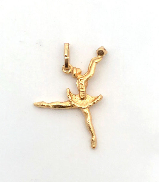 Designer JCM 14K Yellow Gold Cubic Zirconia Dancing Ballerina Pendant