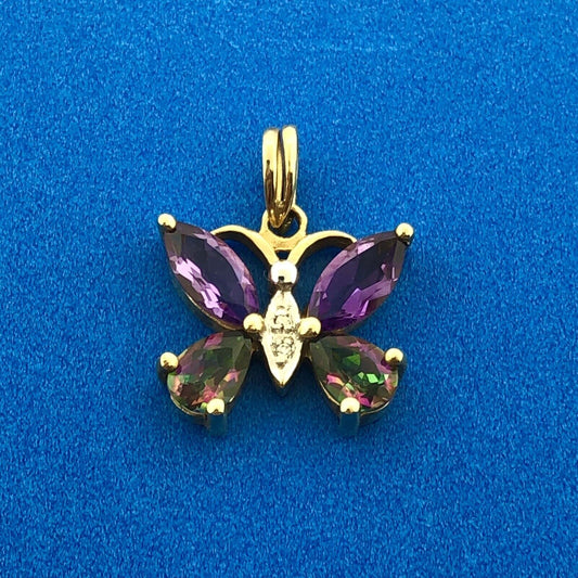 10k Yellow Gold Marquise Amethyst Pear Mystic Topaz Butterfly Dangle Pendant
