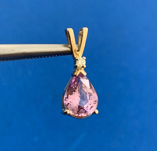 Designer 14K Yellow Gold Pear Amethyst & Round Diamond Accent Drop Pendant