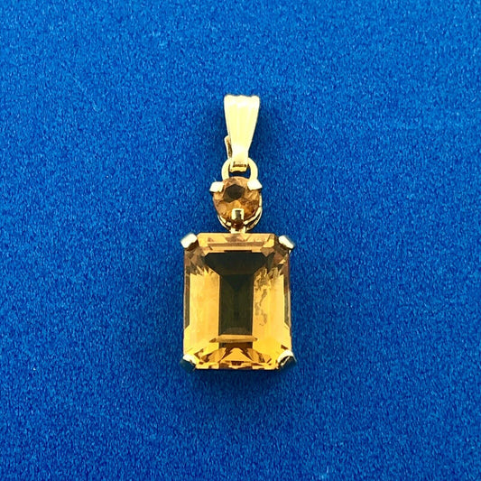 Estate 10K Yellow Gold Rectangle Citrine Mexican Opal Accented Charm Pendant