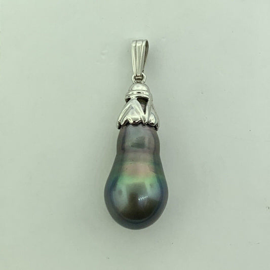 14K White Gold Peacock Baroque Pearl Solitaire Statement Drop Pendant