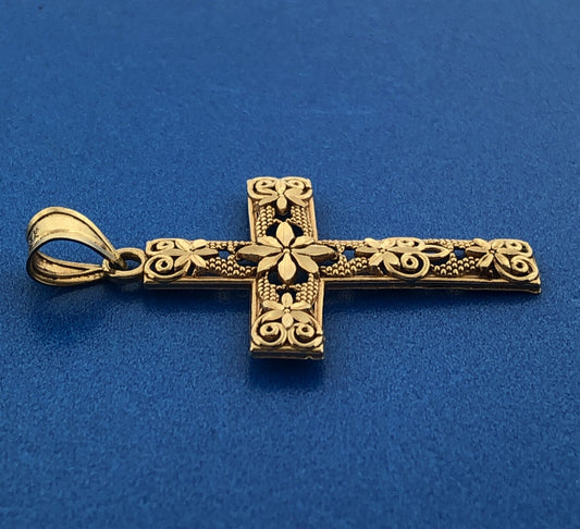 Gorgeous 14k Yellow Gold Openwork Religious Faith Floral Cross Dangle Pendant