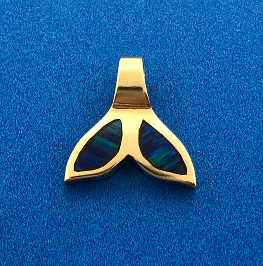 Designer AJM 14k Yellow Gold Blue Black Opal Aquatic Dolphin Tail Charm Pendant